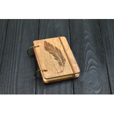 Блокнот деревянный Перо обложка из фанеры формат А7 на кольцах