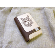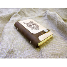 Блокнот Кіт з натурального дерева і натуральної шкіри з застібкою магніт