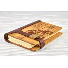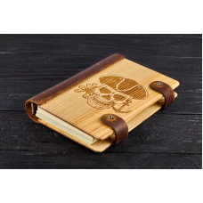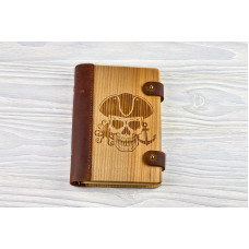 Блокнот Череп (морської) з натурального дерева і натуральної шкіри з застібкою магніт