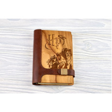 Записная книжка натуральное дерево+кожа Гарри Поттер с застежкой магнит