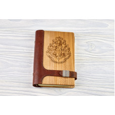 Блокнот Хогвартс з натурального дерева і натуральної шкіри з застібкою магніт