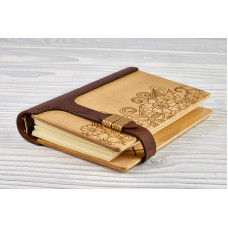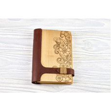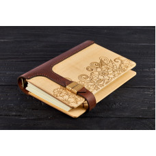 Блокнот Квіти з натурального дерева і натуральної шкіри з застібкою магніт