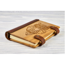 Блокнот Сова из натурального дерева и натуральной кожи с застежкой магнит