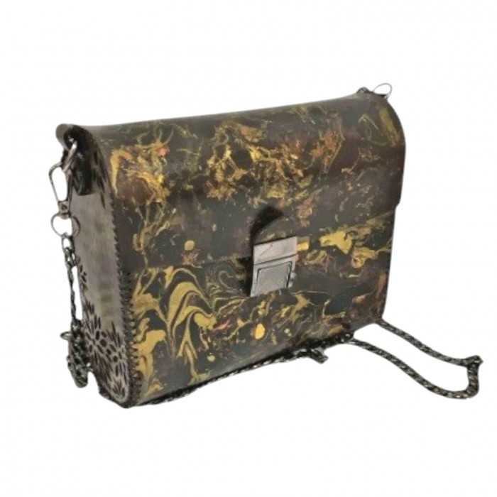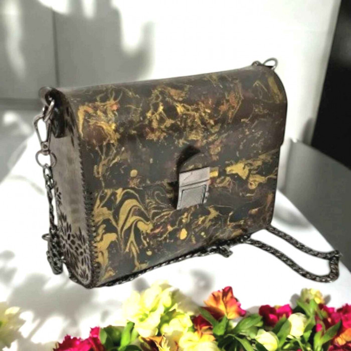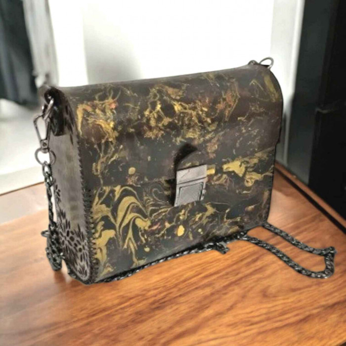 Сумка з натуральної шкіри "crazy horse" чорного кольору з вкрапленнями .