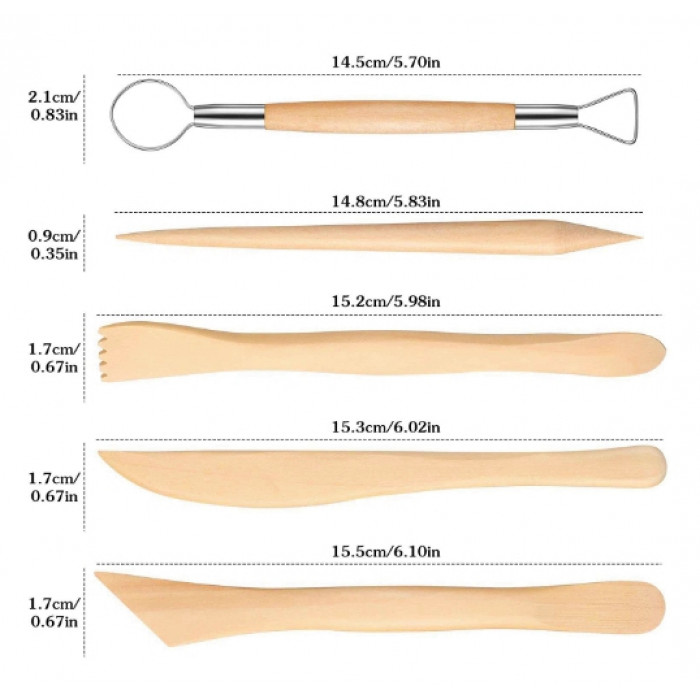 Універсальність підтверджується широким спектром техніки ліплення: різь, сколювання, різання. За допомогою цих інструментів ви можете розпрасовувати тонкі лінії на глині та вирізання фігурок.