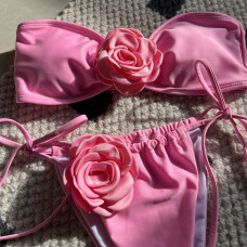 Купальник роздільний рожевий із трояндами S 42