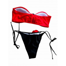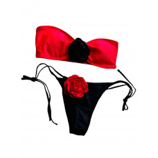 Купальник роздільний червоний ліф чорні плавки з трояндами M 44