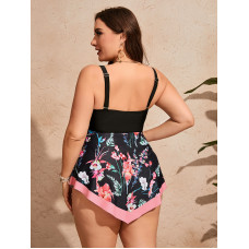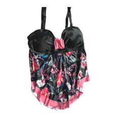 Купальник-сукня жіноча танкіні чорний з квітами 3XL 52 великий розмір