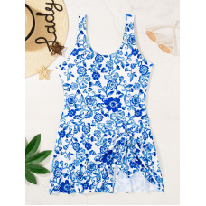 Купальник-сукня жіноча суцільна біла з блакитним принтом 2XL 50 великий