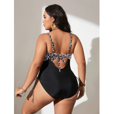 Купальник жіночий суцільний злитий чорний/леопард 5XL 56 великий розмір