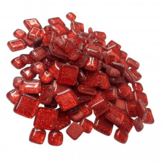 Набір шматочків мозаїки форма Квадрати мікс червоного колір з блискітками 200 гр 150-180 шт товщина 4 мм
