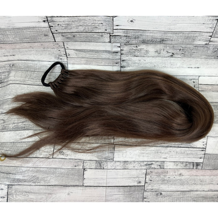 Спосіб кріплення: зав'яжіть хвіст зі свого волосся, обв'яжіть гумкою кілька разів навколо, однієї з пасом обв'яжіть навколо гумки, щоб приховати її