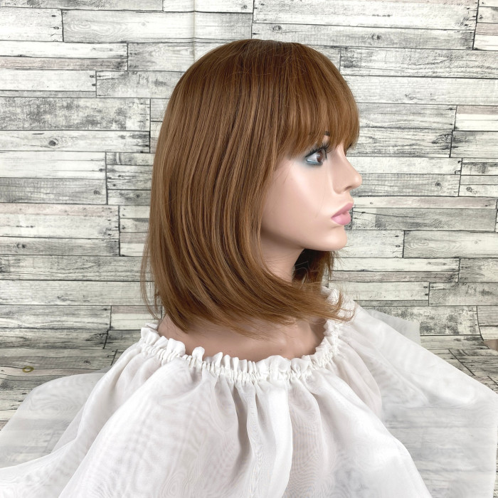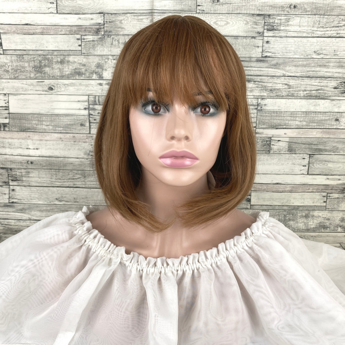 Як доглядати: можна мити в теплому мильному розчині, сушити природним способом (на манекені або банці) Помістіть мокру перуку на підставку та надайте їй бажаного вигляду. Також можна накрутити на бігуді.