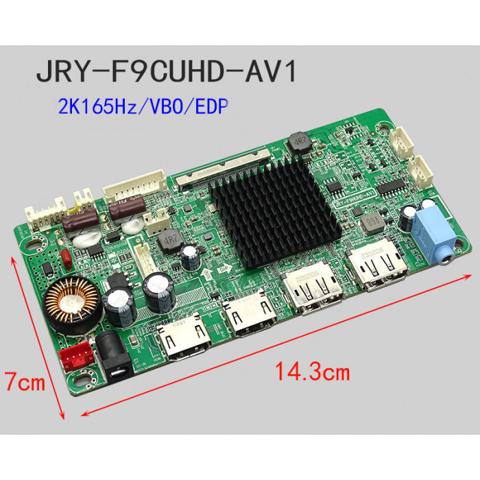 Універсальний скалер JRY-F9CUHD-AV1, з виходом EDP або VBO до 4К. З підтримкою HDR Freesync. Досить потужний ЦП дозволяє скалер працювати з матрицями від 60Грц до 240Грц. Також на платі розташований драйвер світлодіодного підсвічування з потужністю 600мА. Ця плата дозволяє пожвавити досить багато матриць.